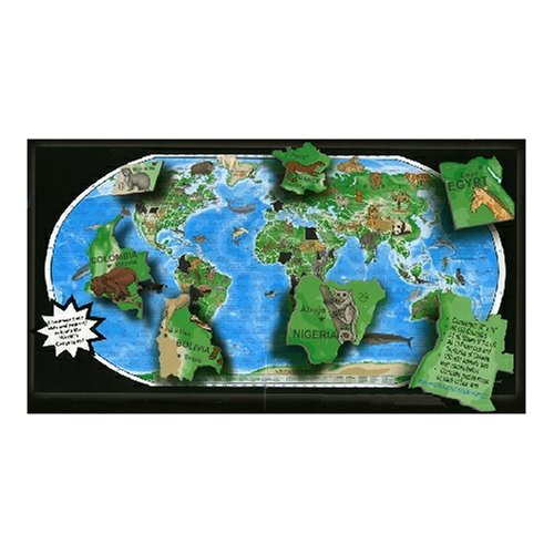 Featuring illustrations of 100 exotic animals and placed where you might find them on a map of the world this 600-piece puzzle is a wonderful learn-as-you-go addition to your familys collection Country pieces are in the shape of the country they represent and the puzzle includes geographic fact Read More..