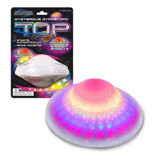 Close Encounter Of The 6th Kind That would be on top of the kitchen table with this motorized extraterrestrialish gyroscopic top with internal red blue green orange and blue LEDs pulsating under its translucent saucer top while accompanied by explosions sirens and ray-gun sounds Measures 3 Read More..