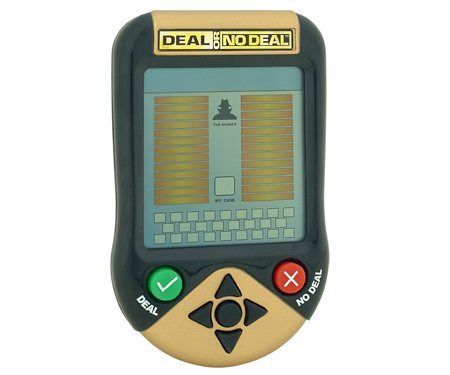 From the hit TV show Deal or No Deal comes this exciting new handheld electronic game Choose a briefcase then as each round progresses you can either stay with your original briefcase or make a Deal with the bank to accept its cash offer in exchange for the dollar amount in your selected case Read More..