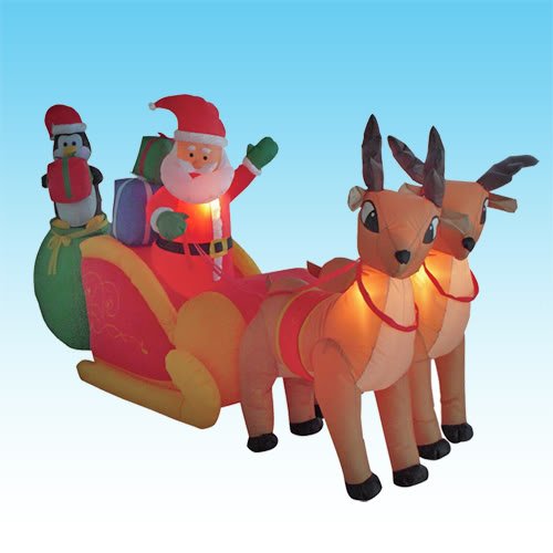 Massive Saving, Order Now! It is truly an amazing We Compare and Choose Low Prices to offer You Here! Best Offers Today! For Black Friday 2012 Read More..8.5 Foot Long Christmas Inflatable Santa Claus & Penguin on Sleigh Pulled by 2 Reindeer Item Description: